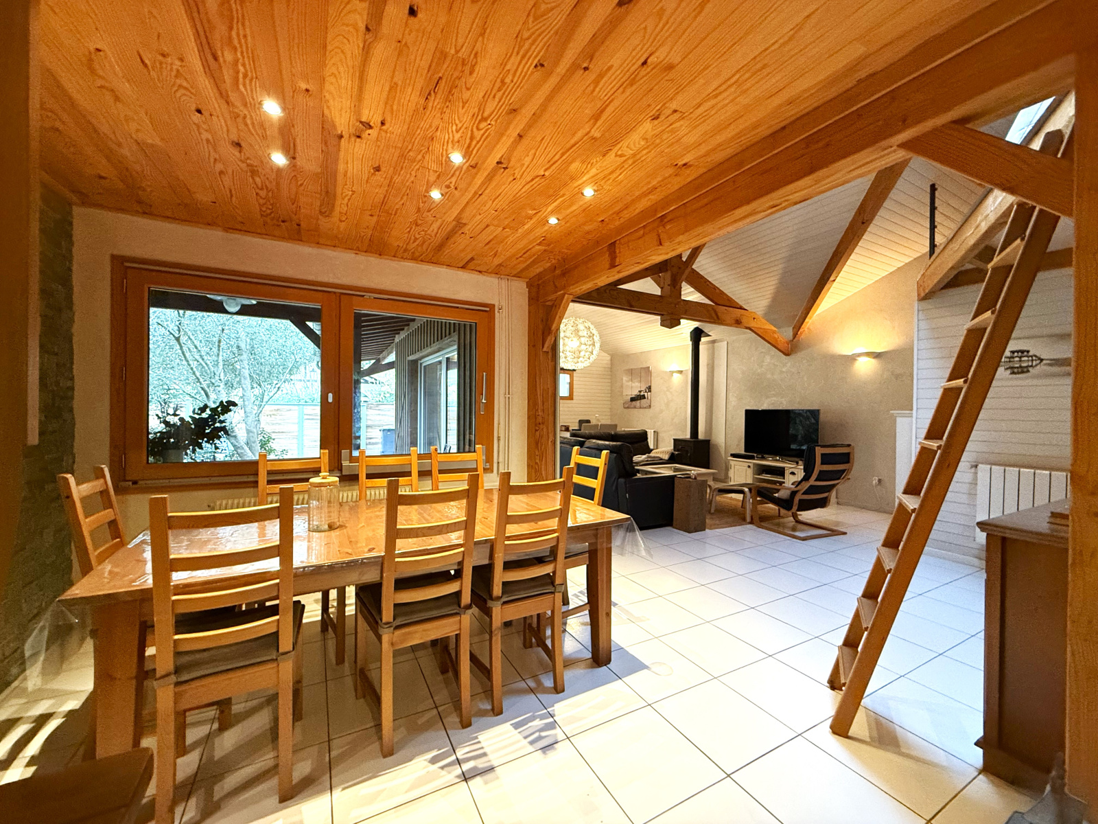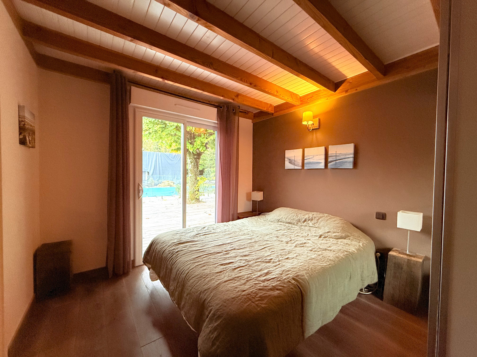 Composée d'une entrée, un salon séjour avec poêle à bois, un beau volume chaleureux grâce à la charpente traditionnelle avec mezzanine, cuisine indépendante, un premier coin nuit avec 2 chambres, salle d'eau et wc indépendant. Une suite parentale avec salle de bains et wc. A l'extérieur, un très bel espace sans vis a vis et baigné par le soleil. Une très grande terrasse en bois exotique autour de la piscine pour les belles journées d'été. Une dépendance T2, idéale pour vos invités ou encore pour des revenus locatifs saisonniers. Elle comprend une pièce à vivre avec kitchenette, une chambre et une salle d'eau avec wc.
