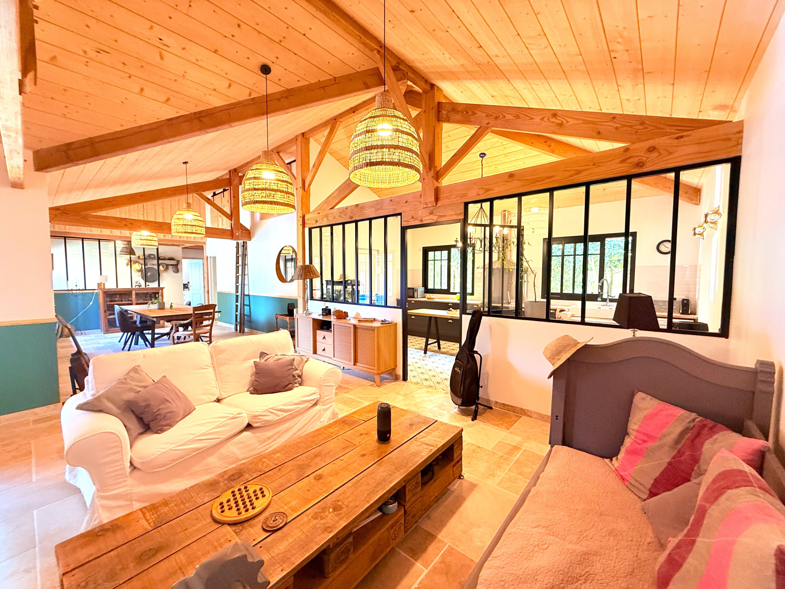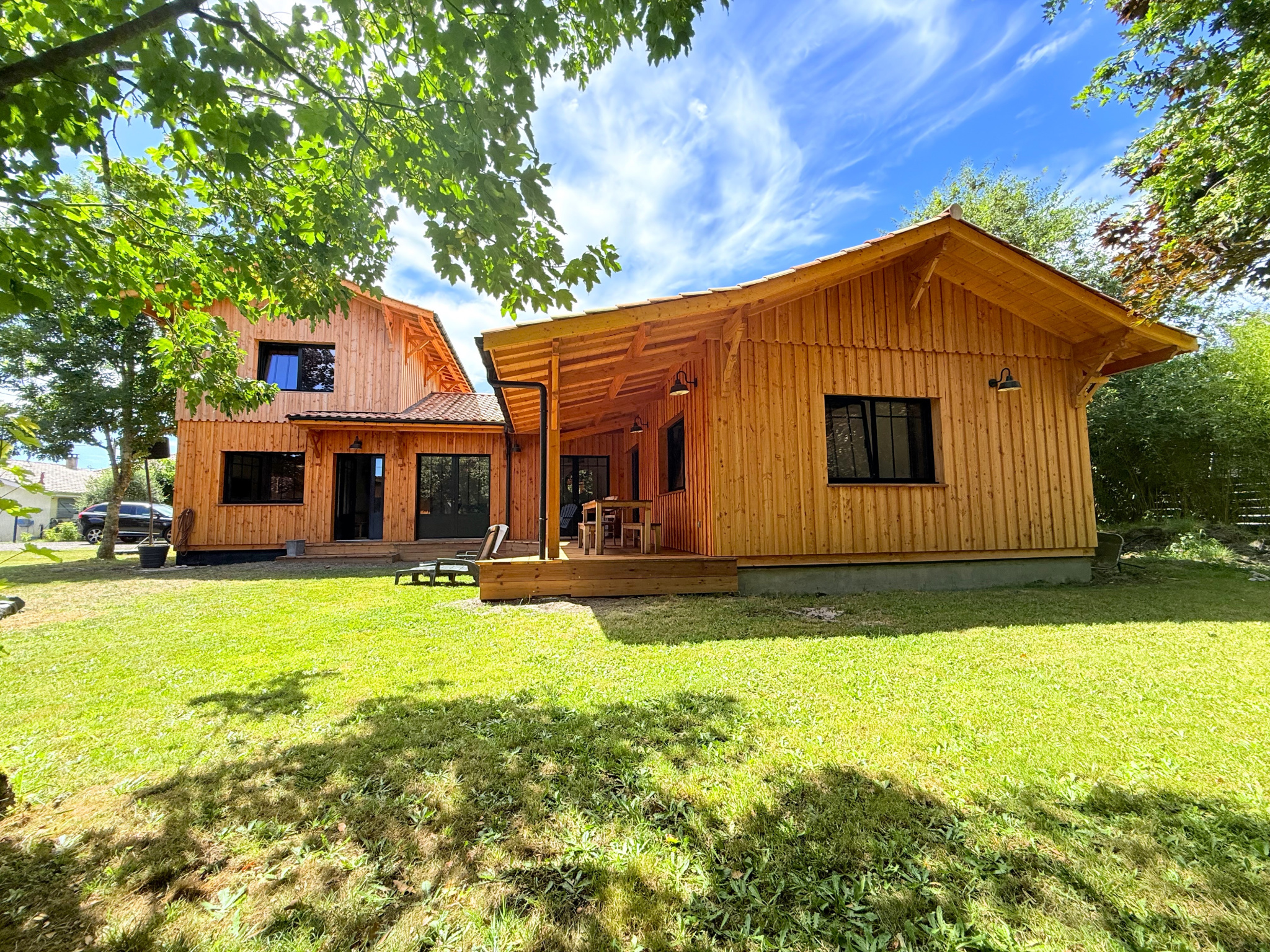 Vous disposerez d'une habitation neuve dans le style des "cabanes du ferret» qui comprend sur 151 m² habitable, au rez de chaussée : une entrée, un superbe espace salon séjour avec charpente apparente, une grande cuisine indépendante dans un style atelier avec cellier attenant. Une suite parentale avec chambre, espace dressing, wc et salle d'eau privative. Un bureau, une seconde chambre avec salle d'eau privative, un wc indépendant. à L'étage une belle et spacieuse chambre avec salle d'eau privative et wc. Chauffage au sol par pompe à chaleur, douches à l'italienne, cuisine équipée, planchers bois, des prestations de qualité dans une ambiance à la fois moderne et feutrée.