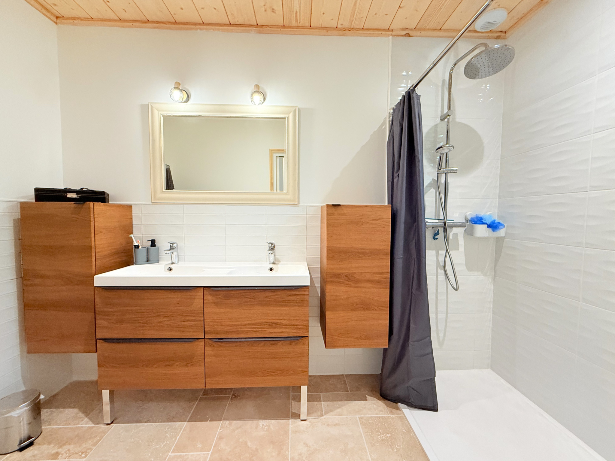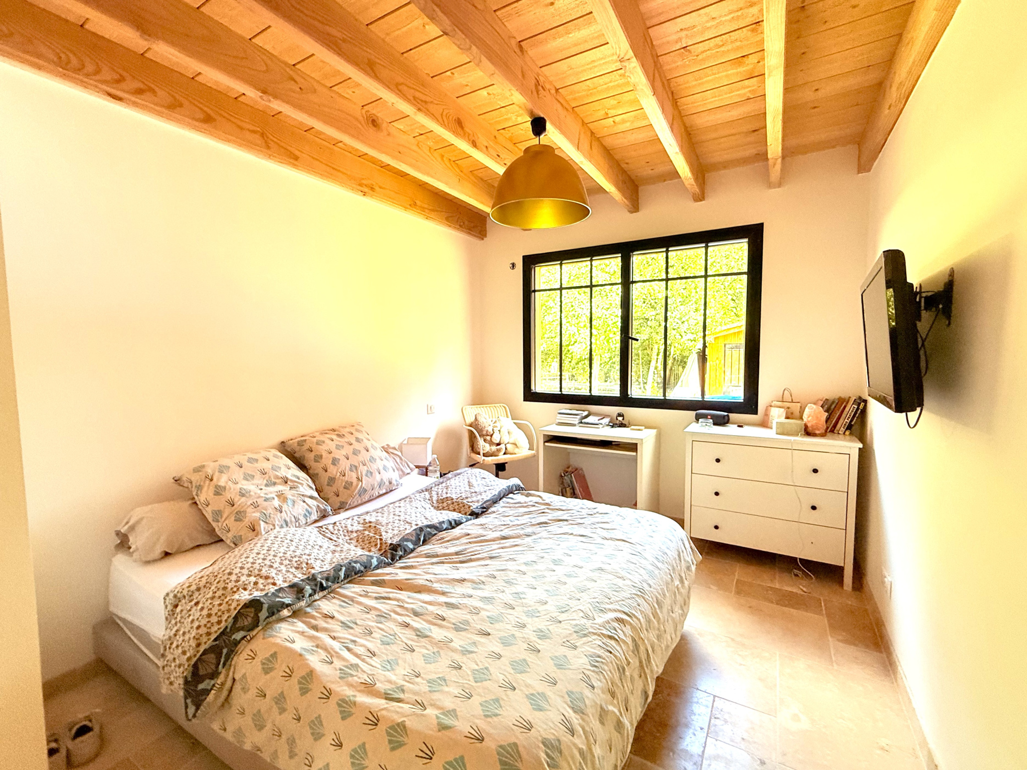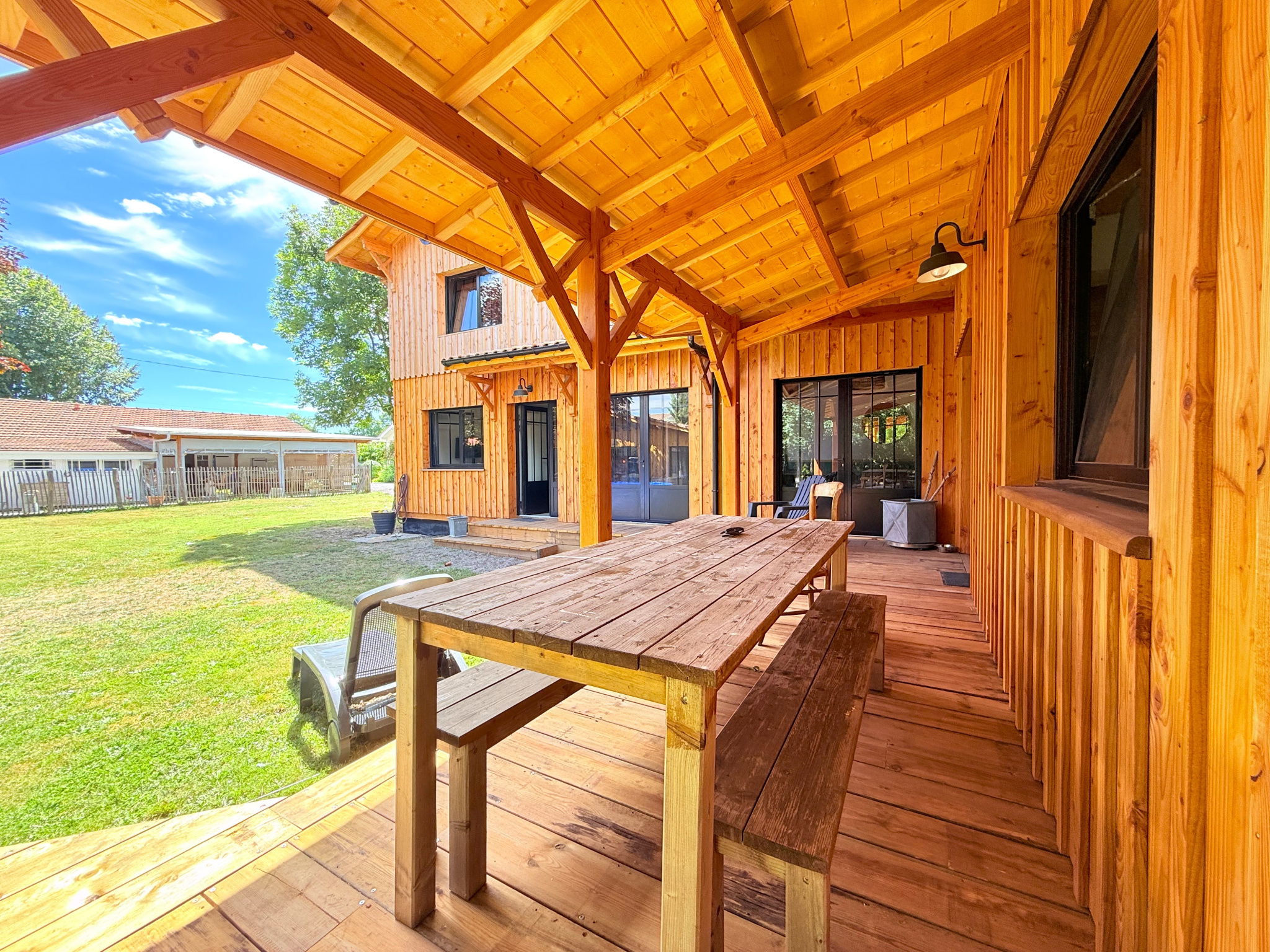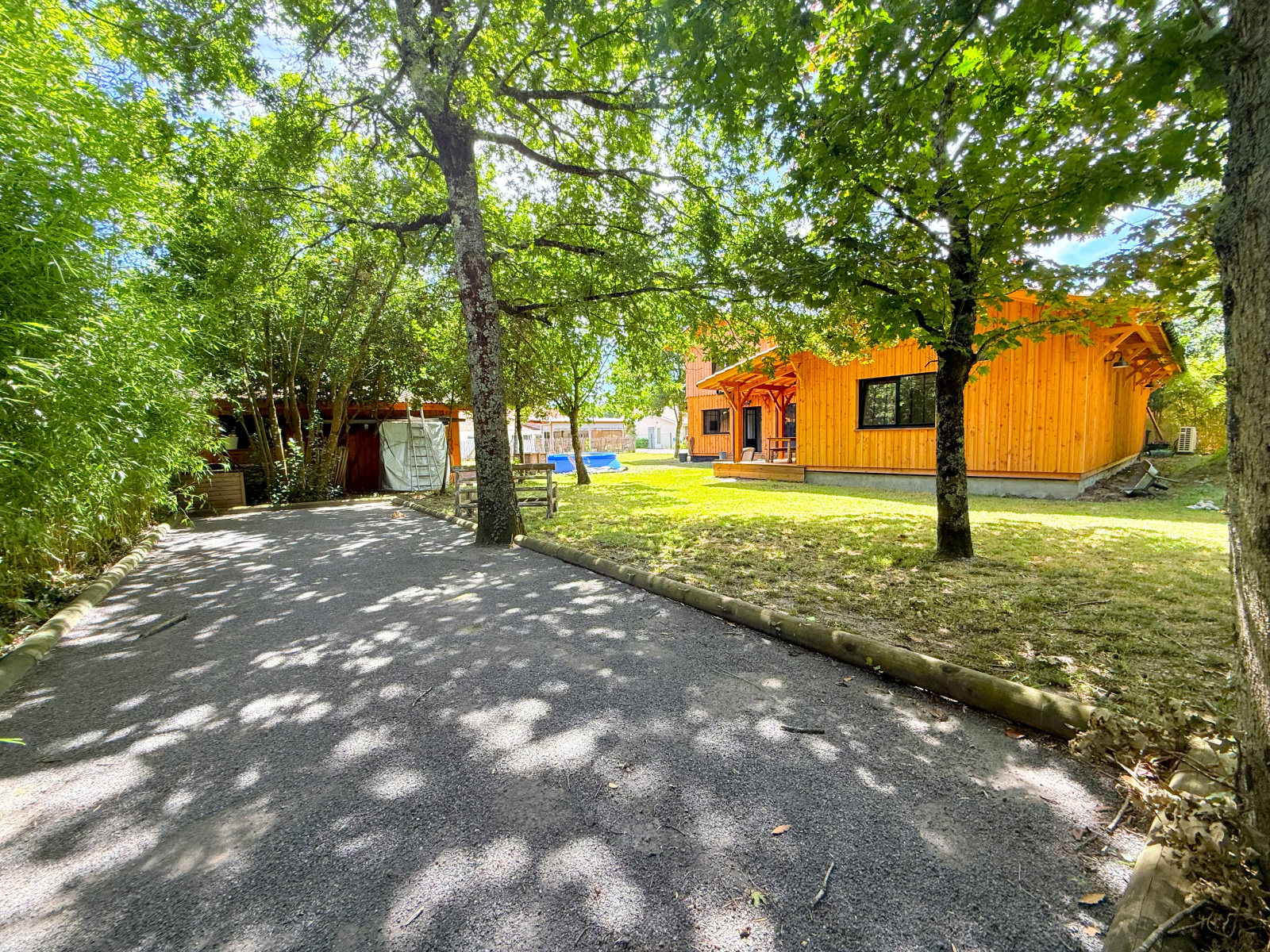 Le jardin arboré est un vrai havre de paix, aménagé avec un espace parking, portail électrique, boulodrome pour les belles journées d'été il acceuillera facilement le projet de piscine de votre choix.
